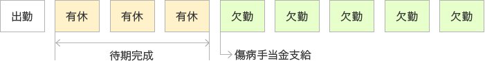 3日間は「待期期間」といい、傷病手当金は支給されません。 - 給与等が支払われていないこと 会社から給与がもらえる場合であっても、その額が傷病手当金より少なければ、差額が傷病手当金として支給されます。