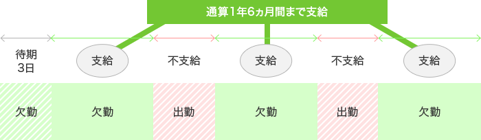 休んだり復帰したりを繰り返すような場合は、出勤して傷病手当金を受けない期間は支給日数にカウントされません。