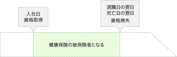 被保険者の資格は、入社した日に取得し、退職または死亡した日の翌日に失います。