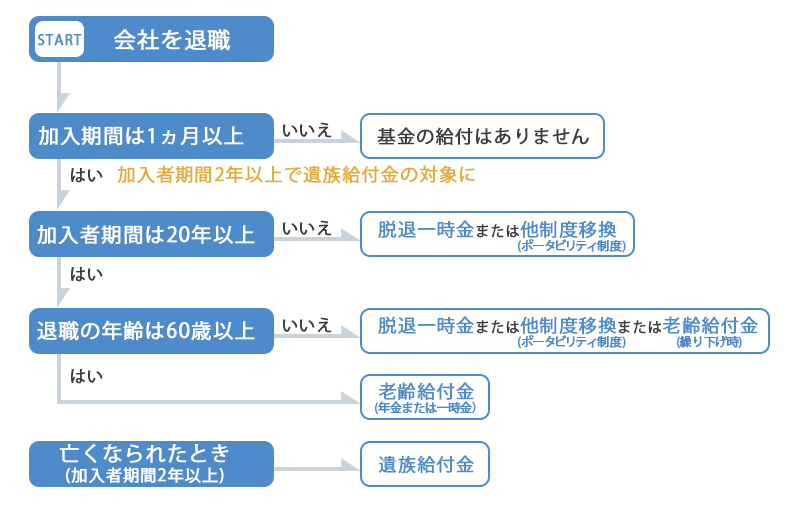 基金からの給付は、加入者期間や退職時の年齢により異なります。